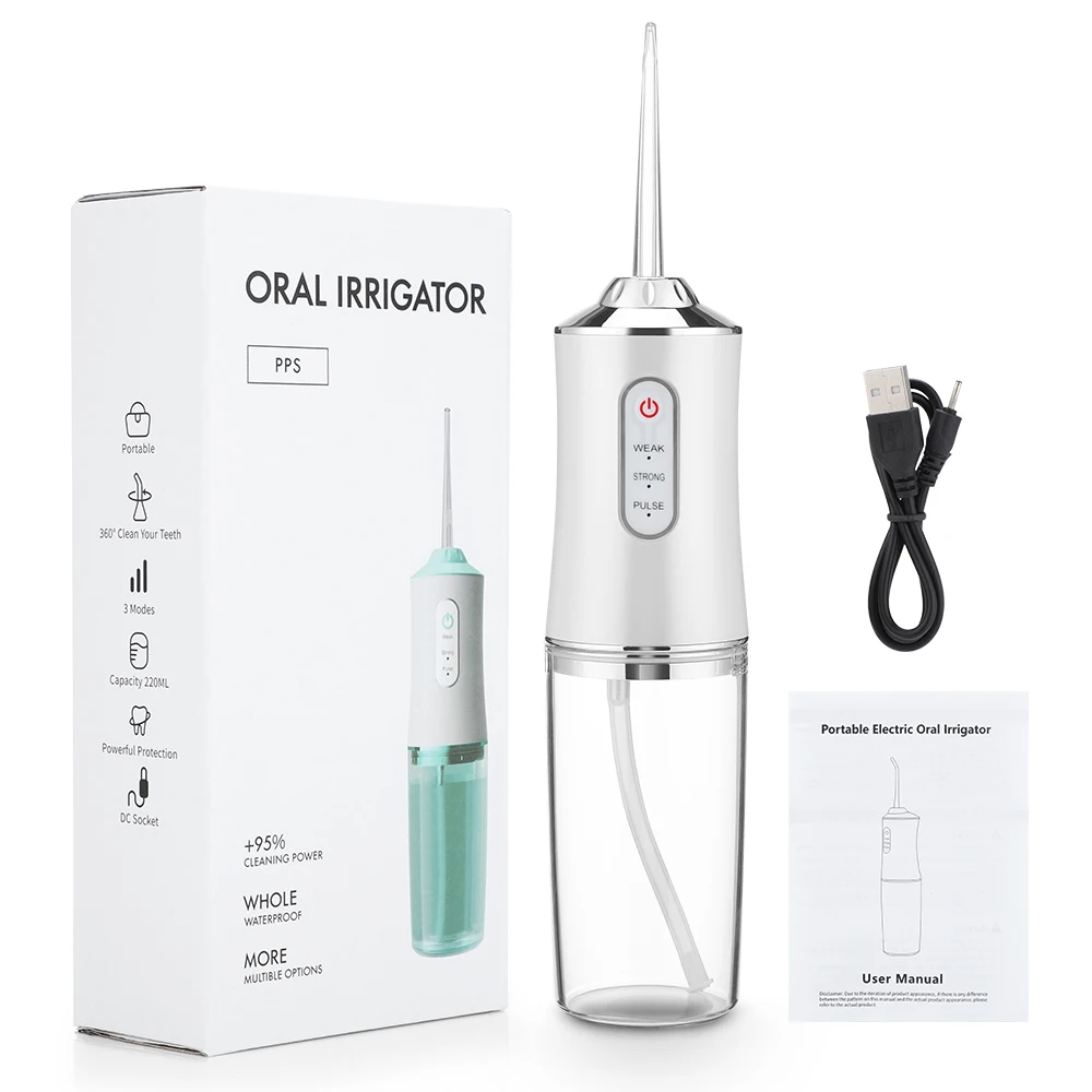 2.The oral irrigator is 3 modes available including soft, strong and pulse mode. By using it 2-3 times a day, you can prevent tooth decay/gingival atrophy/bleeding gums/dental calculus, etc.